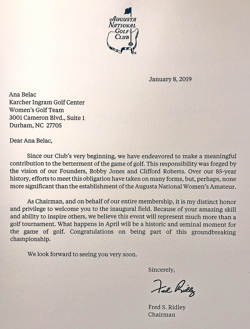 Dosežki v svetu golfa niso ostali neopaženi, v ZDA sem dobila povabilo na zgodovinski prvi ženski turnir Augusta National Womens Championship na sloviti Augusti, ki bo v začetku aprila, teden pred slovitim Augusta Mastersom na istoimenskem igrišču.