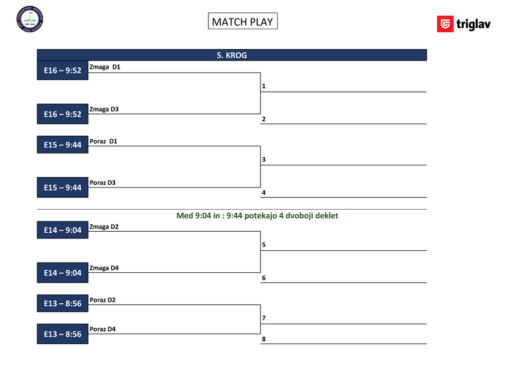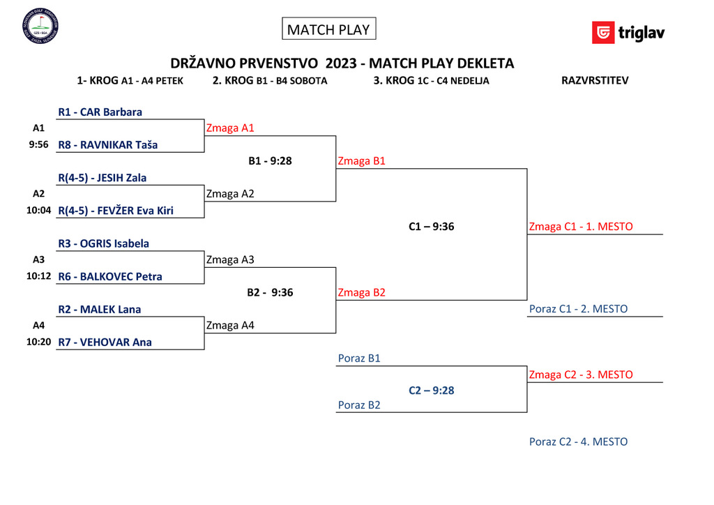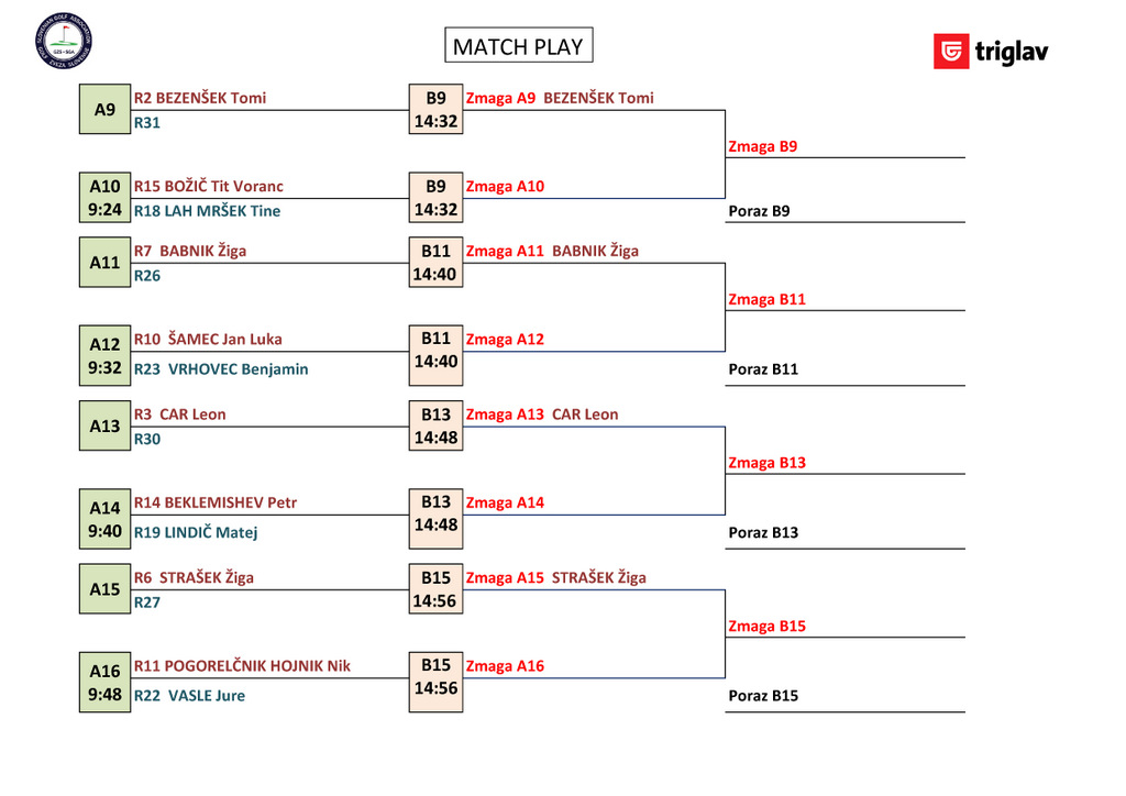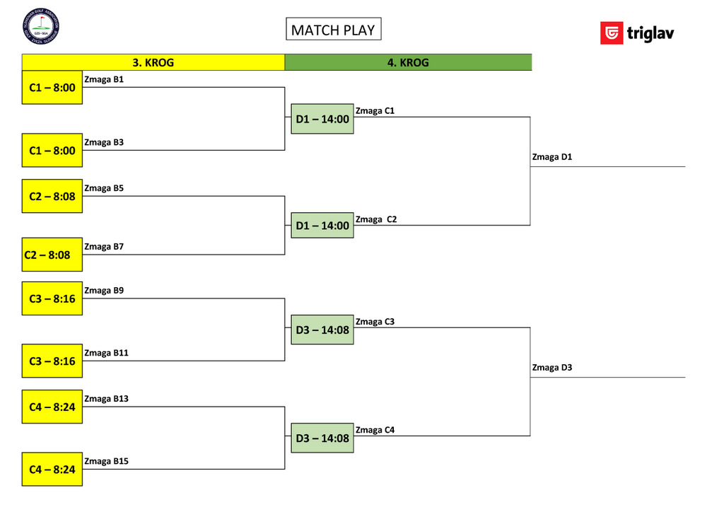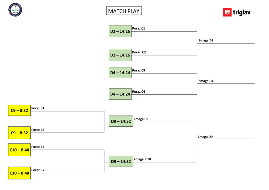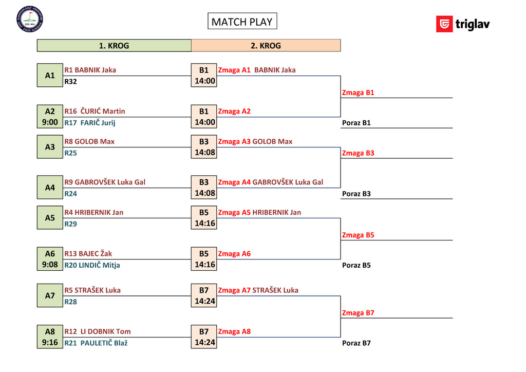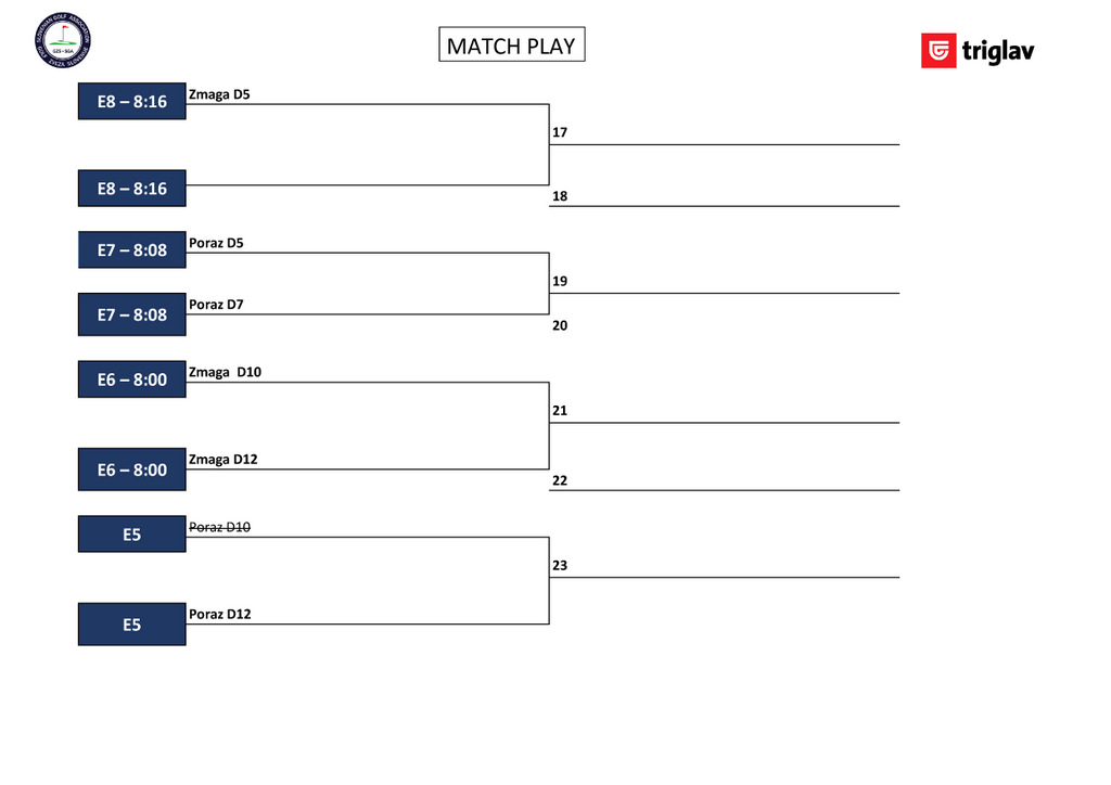 Objavljamo razpored dvobojev državnega prvenstva v Match Play-u 2023, ki bo konec tedna (petek – nedelja) potekalo na golf igrišču Ptuj.