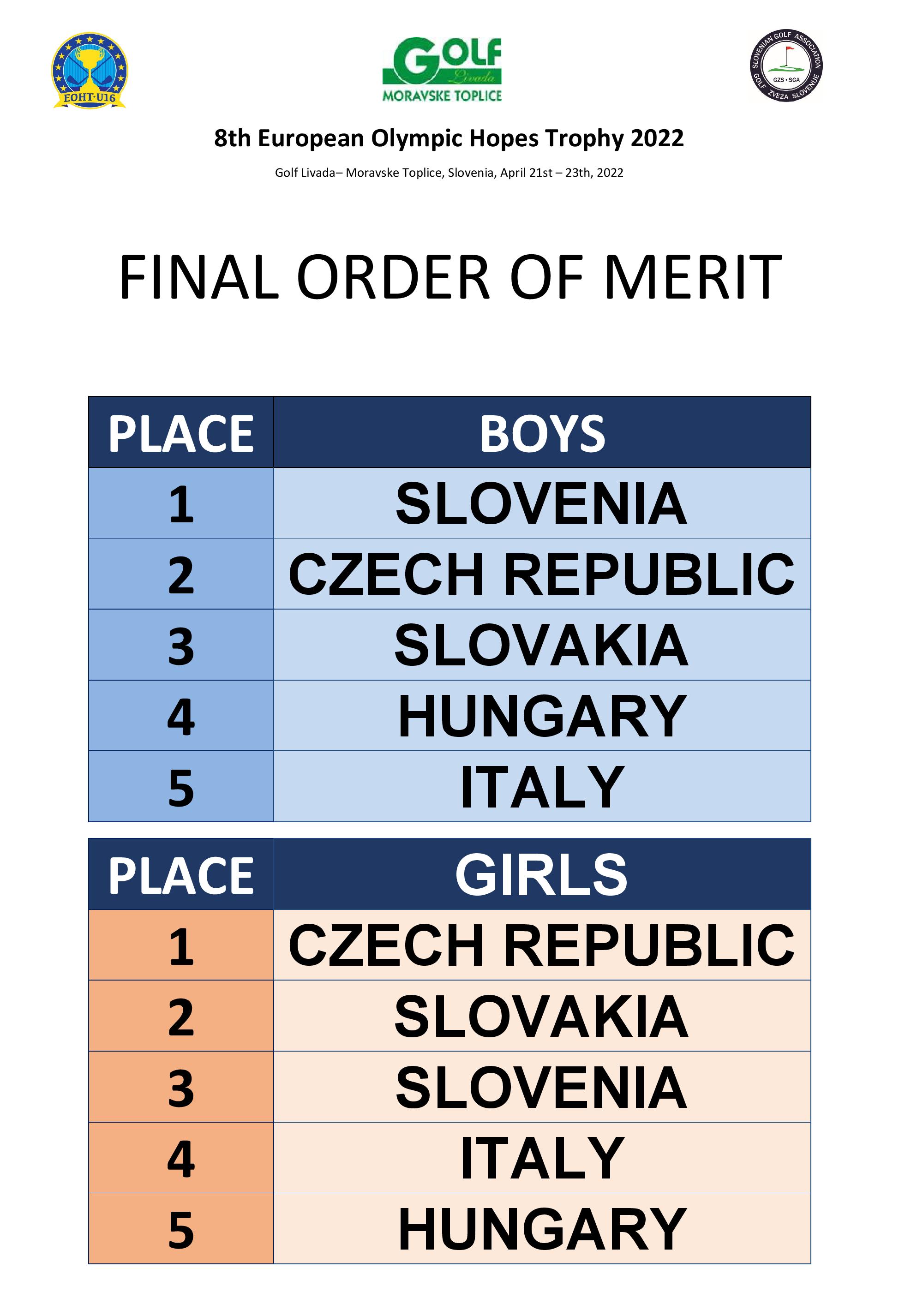 Slovenska dekliška ekipa je uvodni dan začela vrhunsko. Najprej so: Ester Polak, Eva Kiri Fevžer, Isabela Ogris in najmlajša Zala Jesih porazile Italijanke, in to na zadnji luknji ter popoldan še gladko madžarske vrstnice. V petkovem dežju so igrale proti Slovaški in s tesnim izidom 1:2 izgubile. Zadnji dan so se v boju za prvo mesto poskušale zoperstaviti odlični češki ekipi, a je bila kakovost vendarle na strani gostij. Še najbližje je bila točki (od treh možnih) Eva Kiri Fevžer, ki je match play izgubila na predzadnji luknji. Vendar ima ta mlada slovenska ekipa prihodnost, kar je z zaključno mislijo potrdil tudi vodja ekipe Matjaž Car: »Dekleta so me pozitivno presenetila. To je zelo dobra ekipa mladenk, ki so trmaste in odločne. Veliko lahko pričakujemo od njih. Bile so nepopustljive, kar je pripeljalo do preobratov v posameznih dvobojih. Glede na hendikep je končno tretje mesto lep uspeh. Golfistke so mlade in so iz pravega testa. Ponosen sem na ekipo.«