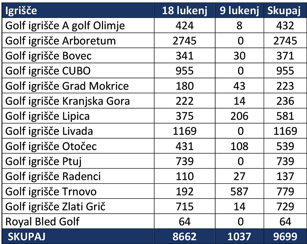 Statistični pregled odigranih turnirjev na slovenskih golf igriščih v letu 2020
