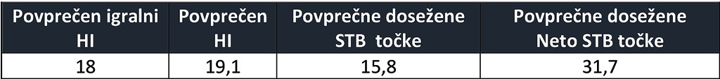 3. Tabela 3 prikazuje povprečen osebno HI in Igralni HI igralcev na vse odigranih turnirjih za spremembo HI in povpreček doseženih rezultatov.