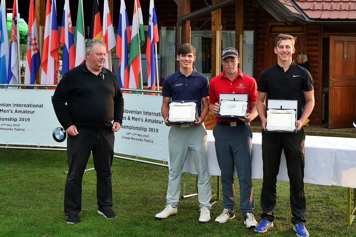 V moški konkurenci izrazitega favorita ni bilo, vodstvo se je menjalo praktično v vsakem posameznem krogu. Nemec Eric Doerrenberg je na koncu zmogel največ koncentracije in konstantne igri in tako osvojil naziv mednarodnega prvaka Slovenije. Na drugem mestu je bil Vid Jože Potočar, ki se mu je z na zadnji luknji doseženim eaglom uspelo priboriti drugo mesto. Tretji je Linus Lang (Nemčija) s šestimi udarci skupno čez par.