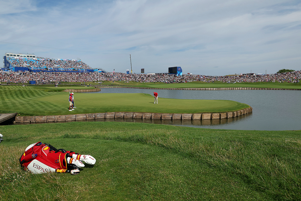 Zaključni dan moškega olimpijskega turnirja je bil zelo razburljiv in napet do zadnjega udarca. Španec Jon Rahm, ki je vodil po treh dneh je bil trdno v vodstvu in po devetih luknjah je njegova prednost znašala kar štiri udarce. Španski novinarji so že pisali naslove o olimpijskem prvaku, ko je “Rhambo” z dvojnim bogijem na 14. luknji ponudil priložnost vsem ostalim. Ujel ga je Tommy Fleetwood, ki je skupaj z branilcem olimpijskega naslova iz Tokija Američanom Xanderjem Schauffelejem igral z njim v zadnji skupini in ga pred zadnjimi štirimi luknjami celo prehitel za udarec. Kot že tolikokrat v letošnji sezoni je še bolje zaključnih devet odigral Scottie Scheffler, ki je odigral vrhunski krog z 62 udarci (-9) in navdušil z kar šestimi brdiji na drugih devetih luknjah. Še posebej dobro je odigral zaključne štiri luknje in z štirimi brdiji poslal jasno sporočilo tekmecem, da želi olimpijsko zlato. Nihče v zadnjih dveh skupinah se ni približal njegovemu rezultatu, saj so Hojgaard, McIlroy in Matsuyama, ki so igrali za njim že preveč zaostali. V zadnji skupini je bil pet lukenj do konca brez realnih možnosti Schauffele in tudi Rahm je po brdiju na šestnajsti vse zapravil z bogijem na naslednji luknji. Bogi na sedemnajsti luknji je naredil tudi Fleetwood, ki je imel žogico pet metrov nad zastavico in se je odločil za čip po zelenici navzdol, ki pa se mu je odpeljal kar pet metrov mimo. Potem, ko se mu je pat ustavil na robu luknje je Scheffler, ki se je na drajvingu že ograval za morebitni play-off, prvič prešel v vodstvo. Fleetwood tudi na zadnji luknji ni udaril blizu zastavice in rutinski par je bil dovolj samo za srebrno medaljo. Domači navijači, ki so pred turnirjem pričakovali medaljo, saj je Mathieu Pavon letos v odlični formi, so bili razočarani, saj je klonil pod pritiskom in zasedel zadnje mesto (+13) med vsemi 58 golfisti, ki so končali tekmovanje. Zadnji dan so zato držali pesti za Victorja Pereza, ki je odigral vrhunski krog in z 63 udarci (-8) na koncu zasedel nehvaležno četrto mesto in za bronom zaostal samo za udarec.